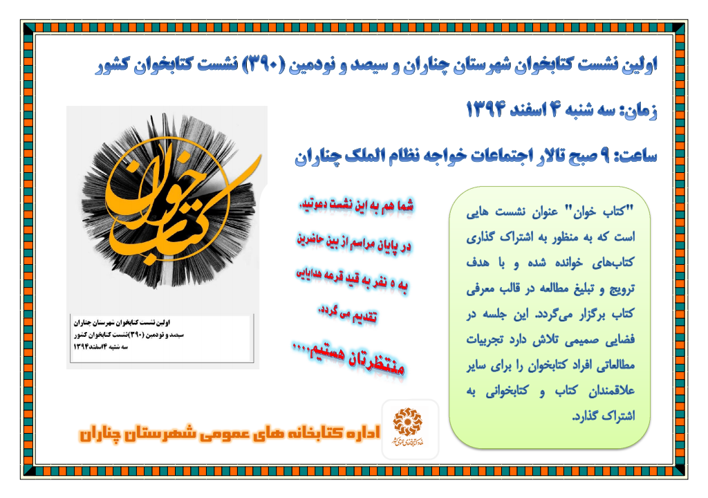 برگزاری اولین نشست کتابخوان اسفند 1394